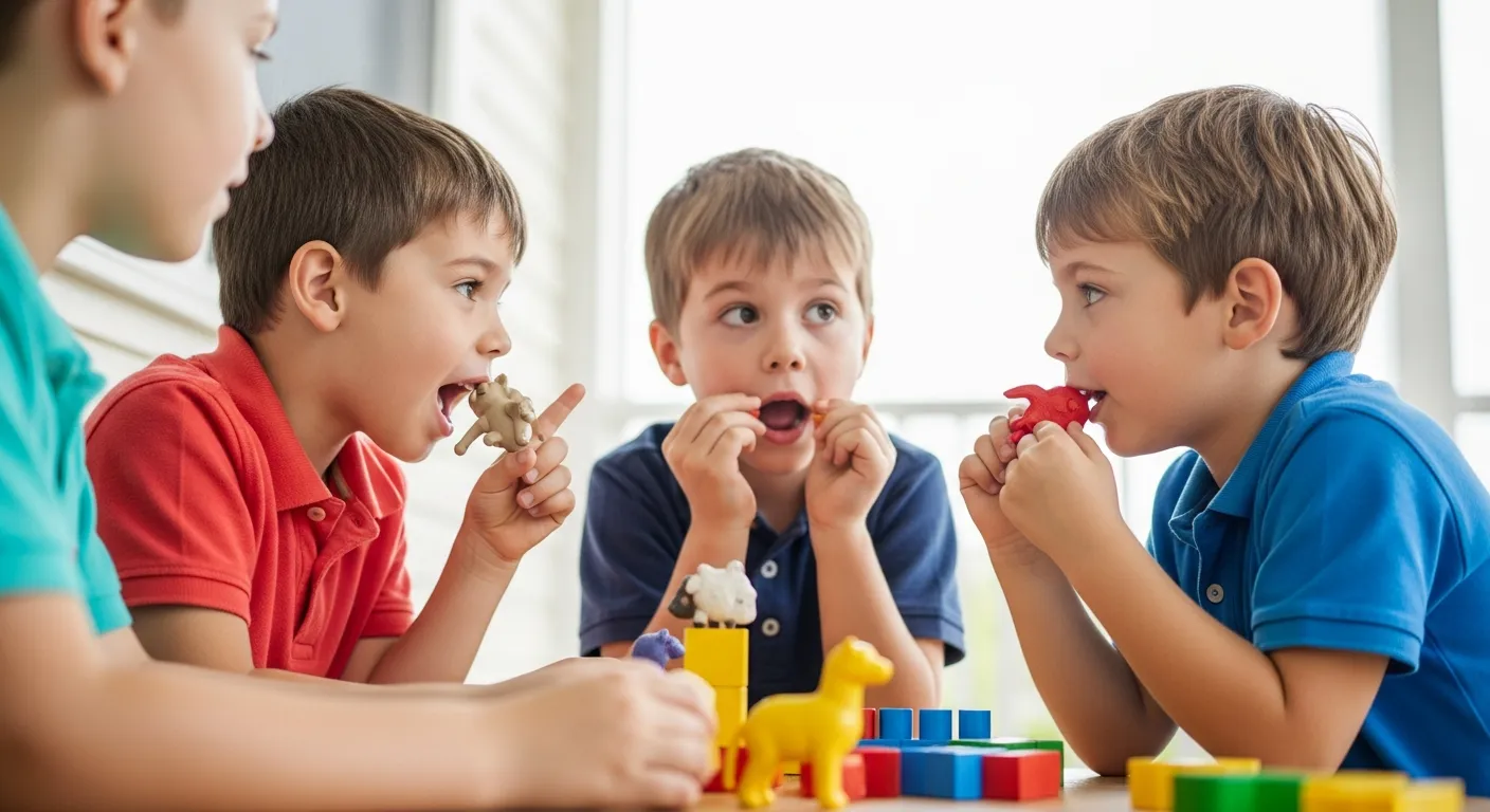 For example, when a child watches another child make the “m” sound with clear mouth movements, their brain prepares to imitate that movement. This peer-to-peer learning creates a natural, less intimidating environment than adult-led instruction alone.